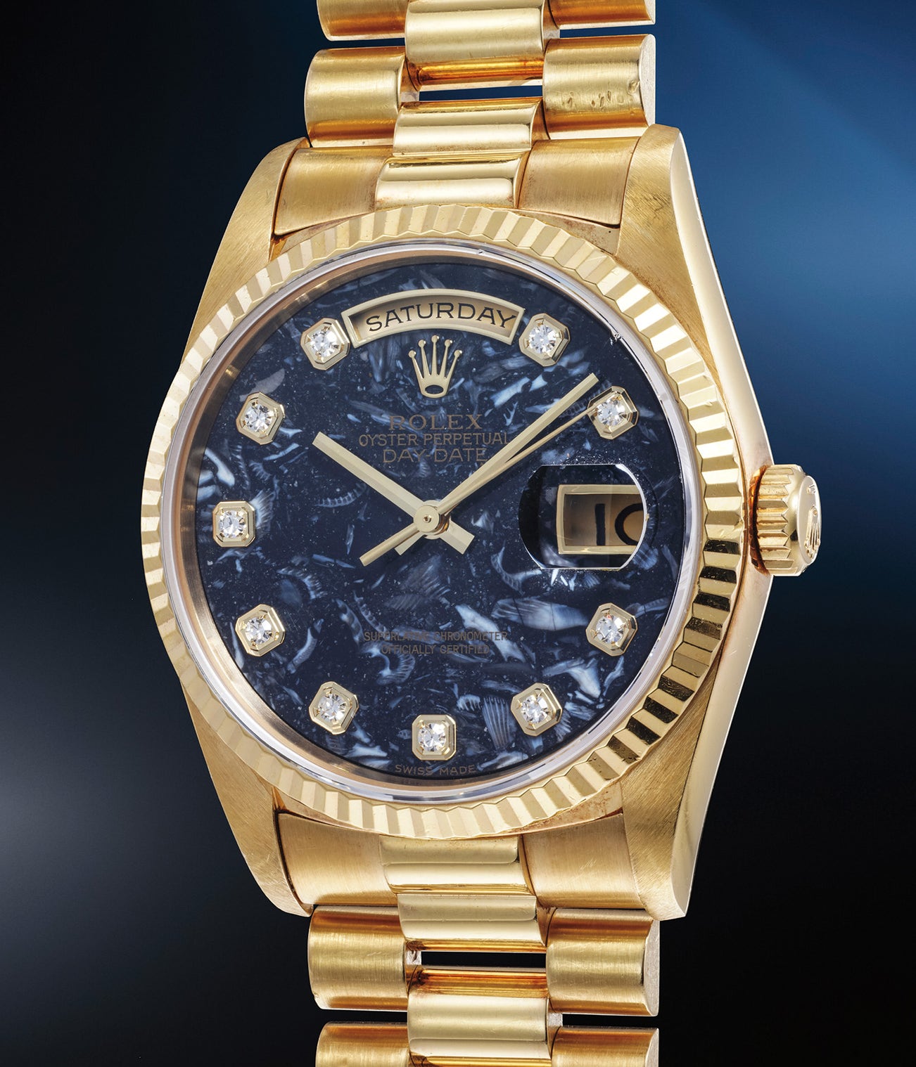 Rolex in particular excels in using hard stone and unusual materials. The manufacture has elevated its dress watches with materials such as rubellite, blood stone, coral, and a number of different fossil stones, providing an unusual design twist to classic models.