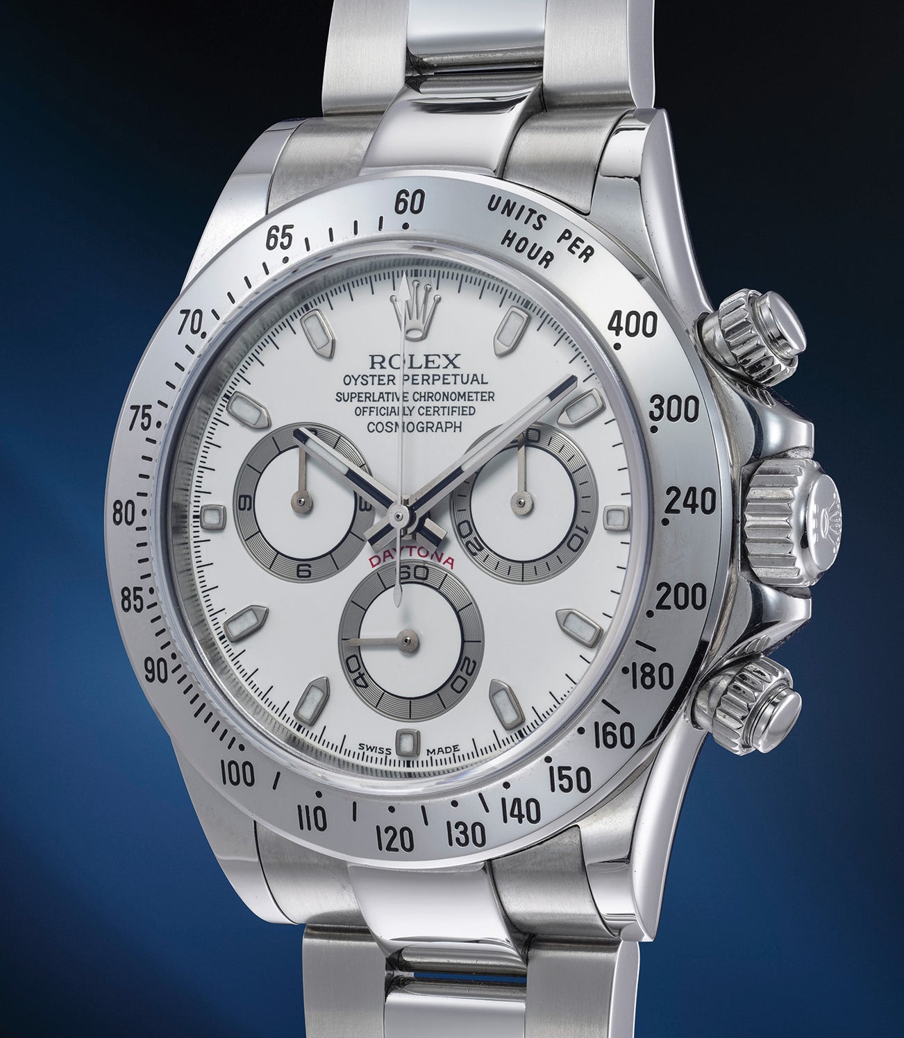 Offered with its full set of accessories and preserved in excellent overall condition, the present is an example of Rolex Daytona for collectors seeking an iconic daily wristwatch.