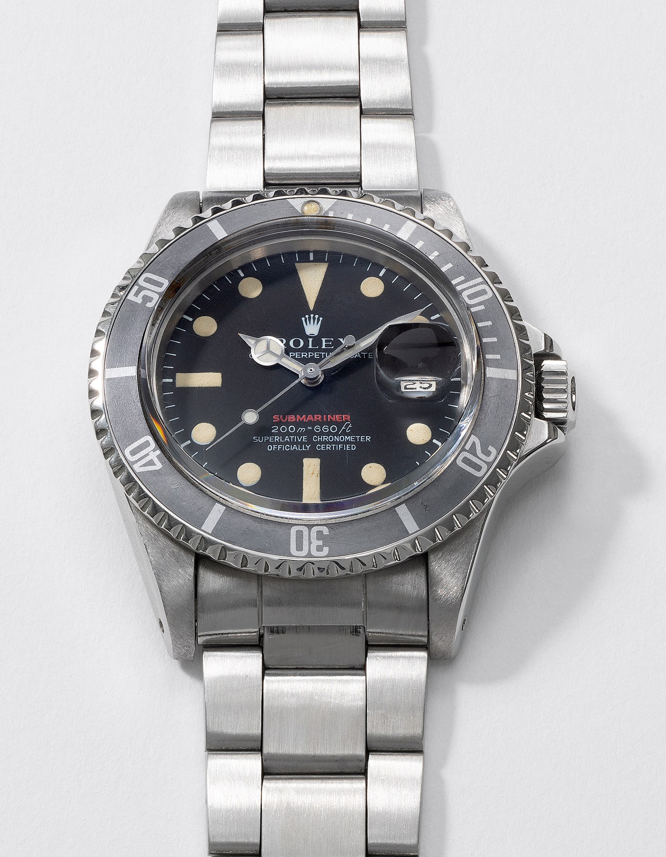The present Rolex Submariner is a handsome and early example of the coveted ref. 1680 with a “Red Sub” MK II ‘meters first’ dial depicted by its open “6’s” and an elongated “F” for its depth rating. Bearing a 2.2 million serial, the present example with an attractive ghost bezel hails from circa 1970. Offered in attractive overall condition with a nice dial featuring buttery luminous plots, the present example is certainly one not to miss.