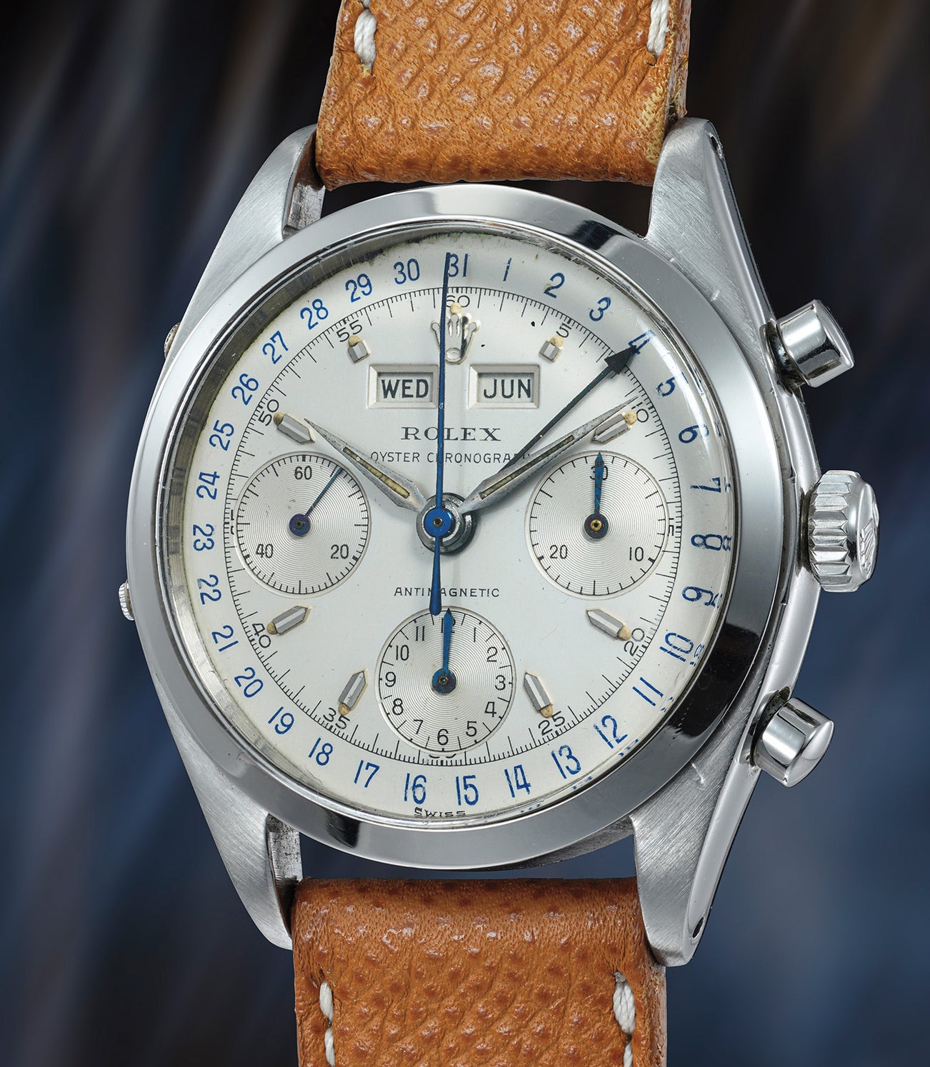 Its roots date back to 1947, when Rolex launched reference 4767 - Rolex's very first triple calendar chronograph wristwatch fitted inside a water-resistant Oyster case. Between 1947 and 1962, a total of four different Oyster Dato-Compax models were produced: references 4767, 5036, 6036 and 6236. Produced in yellow and pink gold as well as stainless steel, the production run was very small for each variation. Over the years, Rolex modified both the dial and case design, with the final watch in this series, the reference 6236, featuring a more modern, clean dial style, as well as a three-piece case with larger bezel.