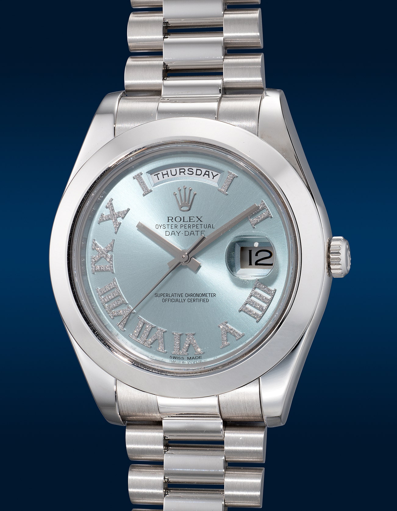 - The reference was discontinued in 2015 with the release of the Day-Date 40. Preserved in excellent overall condition, the present timepiece is offered by the original owner and is accompanied by the original guarantee and presentation box. The present example is a fantastic opportunity to acquire an attractive and luxurious wristwatch manufactured by none other than Rolex.