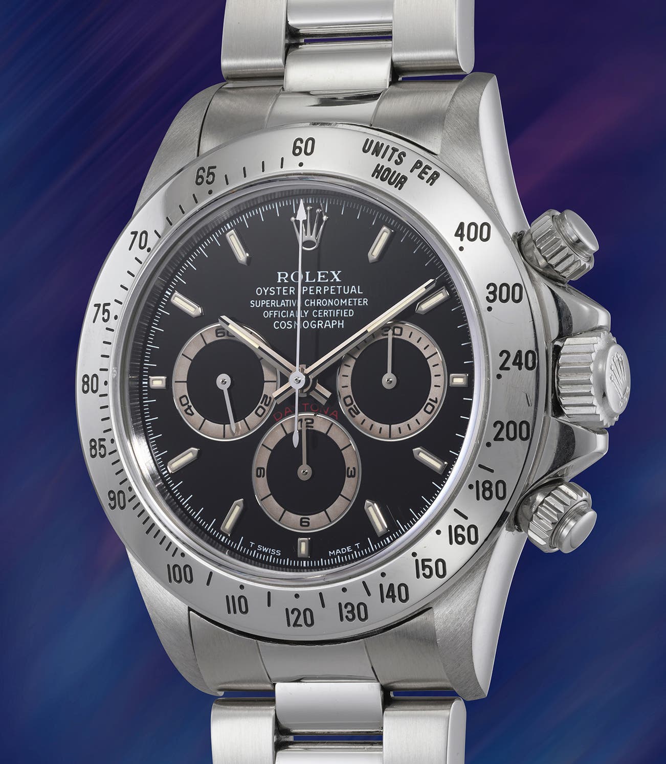 Accompanied by its original punched certificate, presentation box, and outer packaging, this Daytona is an outstanding opportunity to acquire one of the most historically significant and collectible references in the model’s lineage.