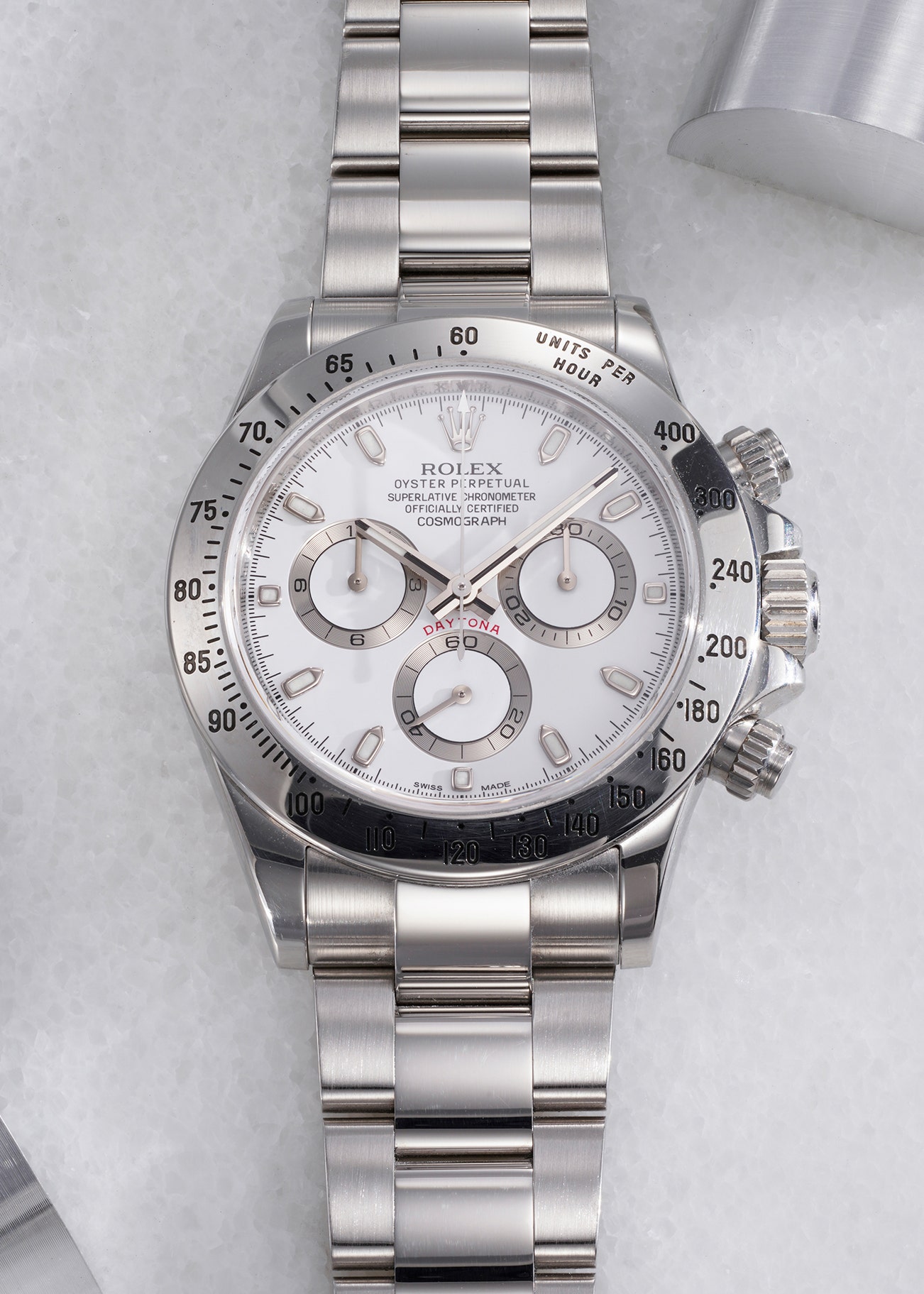 - Offered with its accessories and preserved in excellent overall condition, the present is an example of Rolex Daytona for collectors seeking an iconic daily wristwatch.