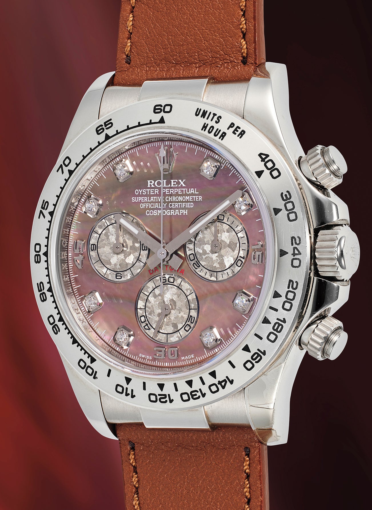 Dating to 2021, this now-discontinued iteration of the Cosmograph Daytona is fitted with the caliber 4130 automatic movement, and is accompanied by all of its original accessories. It is preserved in outstanding overall condition with hardly any signs of wear.