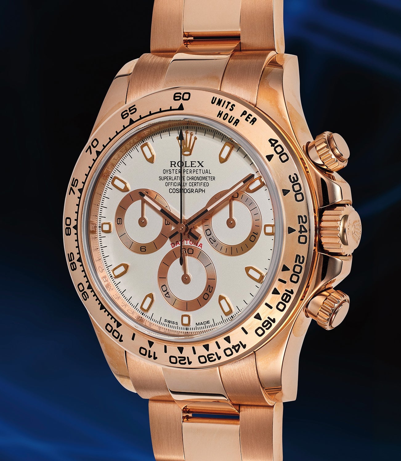 Few Rolex Daytonas in this exquisite configuration have appeared at auction, and the present example is preserved in near-new condition with its factory caseback stickers in place. Dated from 2017 and accompanied by its complete set of accessories, this stunning combination of Everose gold and ivory dial is no longer available in Rolex’s current catalogue, making it a rare and desirable find for collectors and connoisseurs alike.