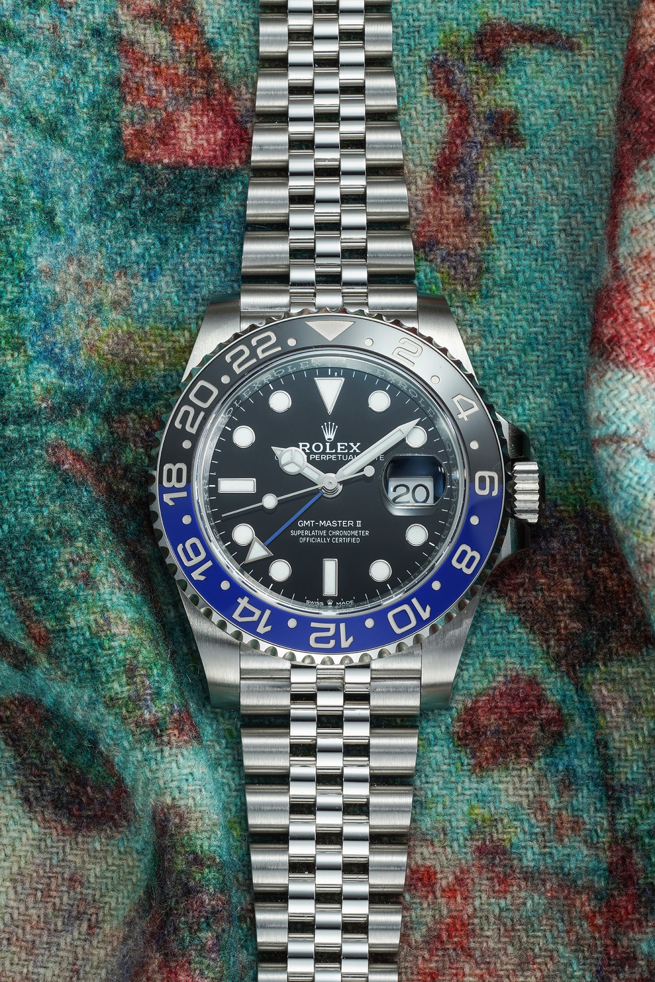 - Reference 126710BLNR was first presented during Baselworld 2019 and received immediate praise by both critics and collectors. Nicknamed the “Batman” for its eye-catching bicolour black and blue bezel, the watch incorporates all the most beloved traits of the new GMT-Master II line: an iconic Cerachrom 24-hour rotatable bezel, the new caliber 3285 and a polished and brushed Jubilee bracelet; a novelty for Rolex sports watches which used to have an Oyster bracelet.