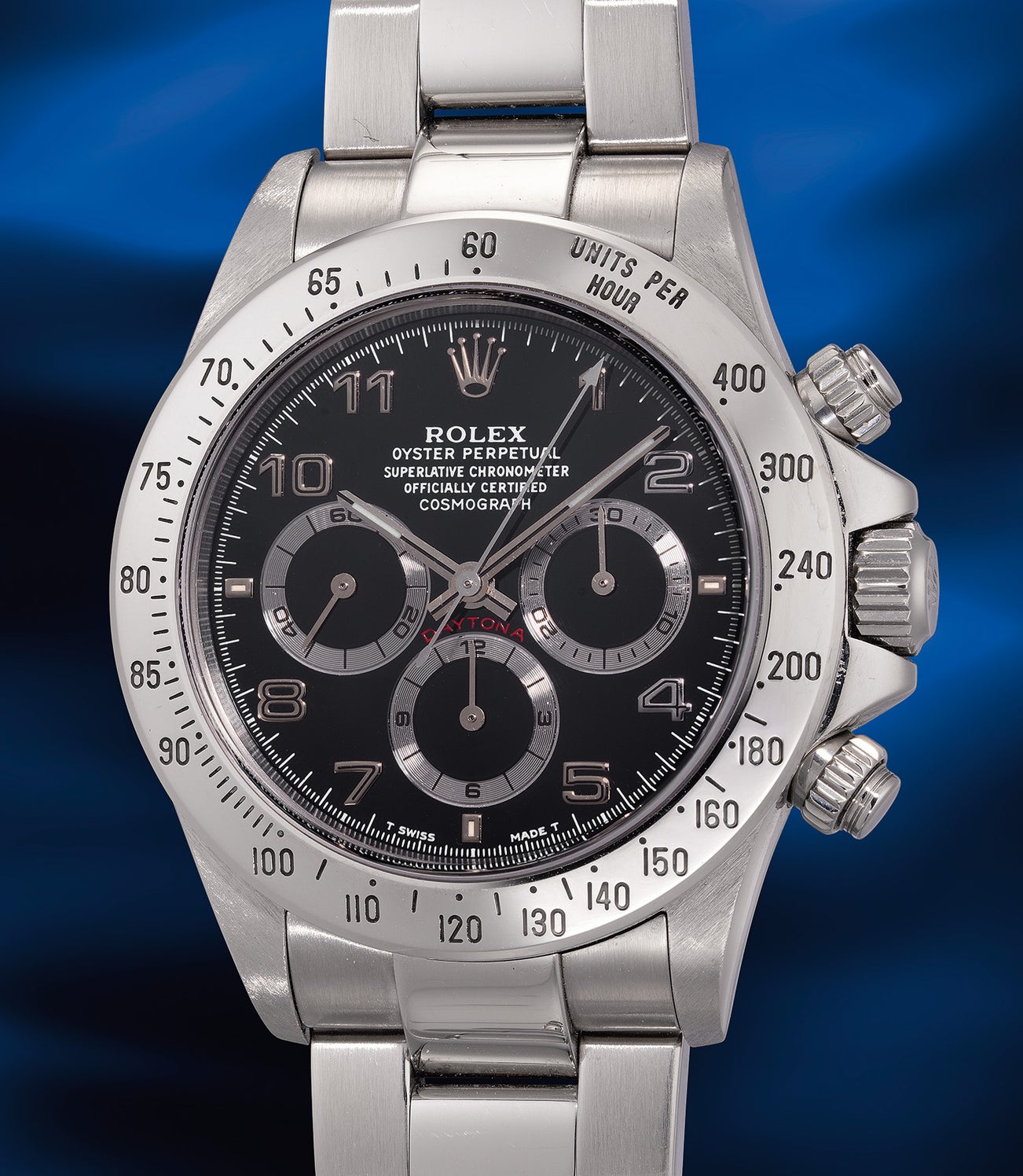 The importance of this lot cannot be overstated, as it was prominently featured in the Ultimate Rolex Daytona book and Daytona Perpetual book by Pucci Papaleo. Complete with its guarantee and presentation box, this exceptionally rare and well-preserved “prototype” Daytona ref. 16520 will enchant collectors seeking something extraordinary and wishing to honor Rolex as a pioneer in innovative dial designs, both now and in the years to come.