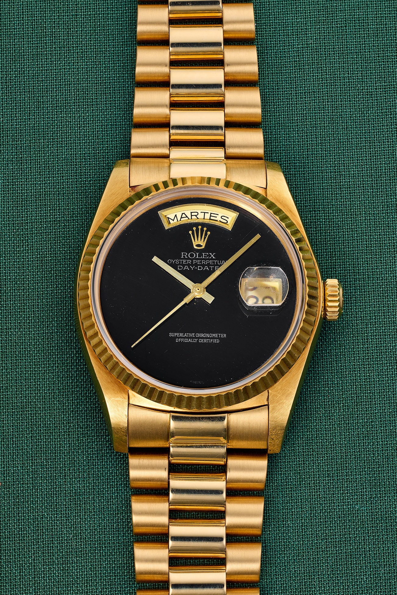 • Further distinguishing this example is the Spanish-language day disc, an elegant detail that nods to Rolex’s international appeal and customization options. The presence of the Spanish day wheel not only enhances the watch’s individuality but also underscores the brand’s deep connection to European, Latin American, and Spanish-speaking collectors.