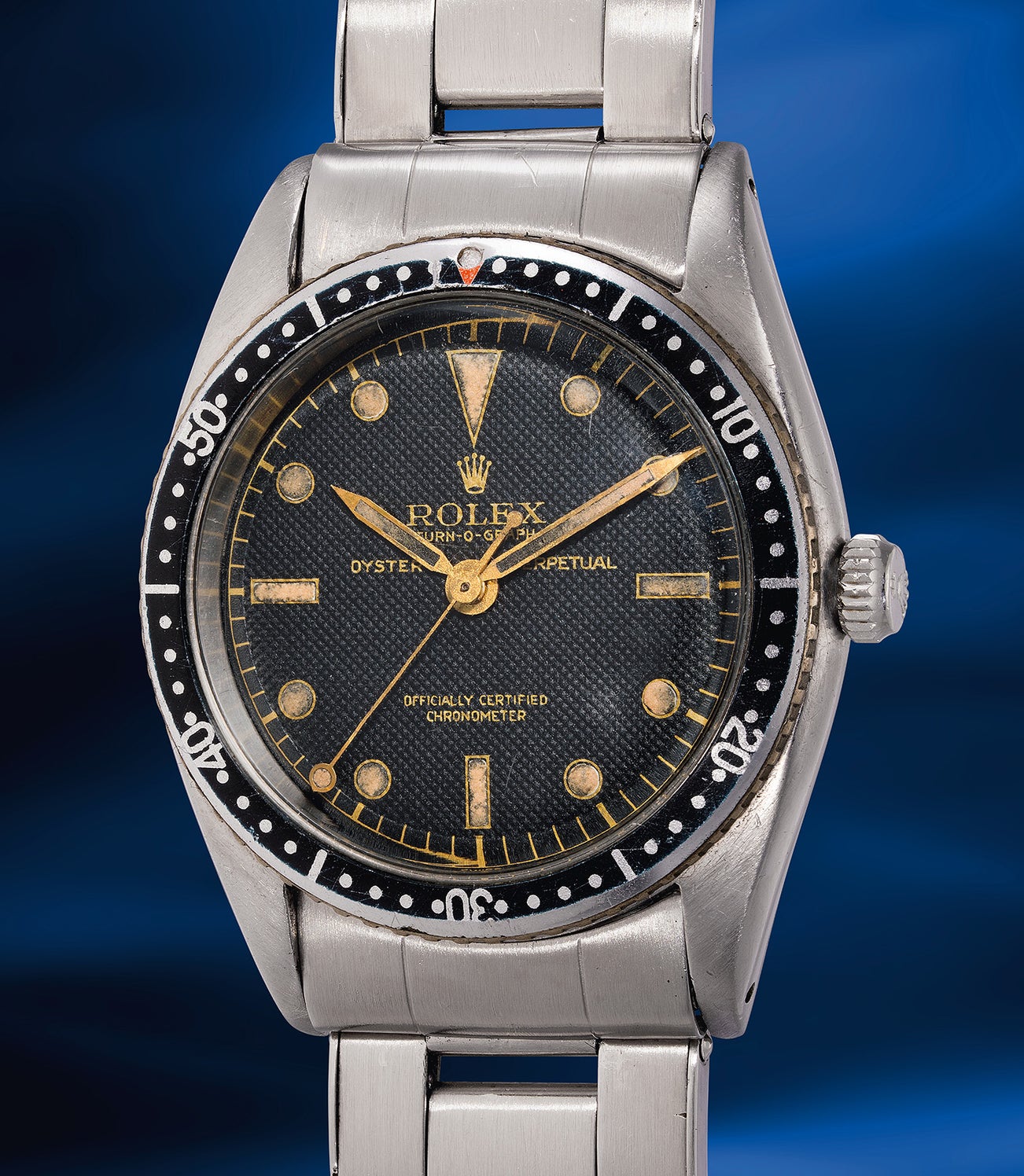 Due to its brief one-year production run, remaining good quality examples of the Rolex reference 6202 Turn-O-Graph have become quite rare and highly sought after by collectors. This watch represents the foundation and DNA of Rolex’s rotating bezel tool watches for years to come.