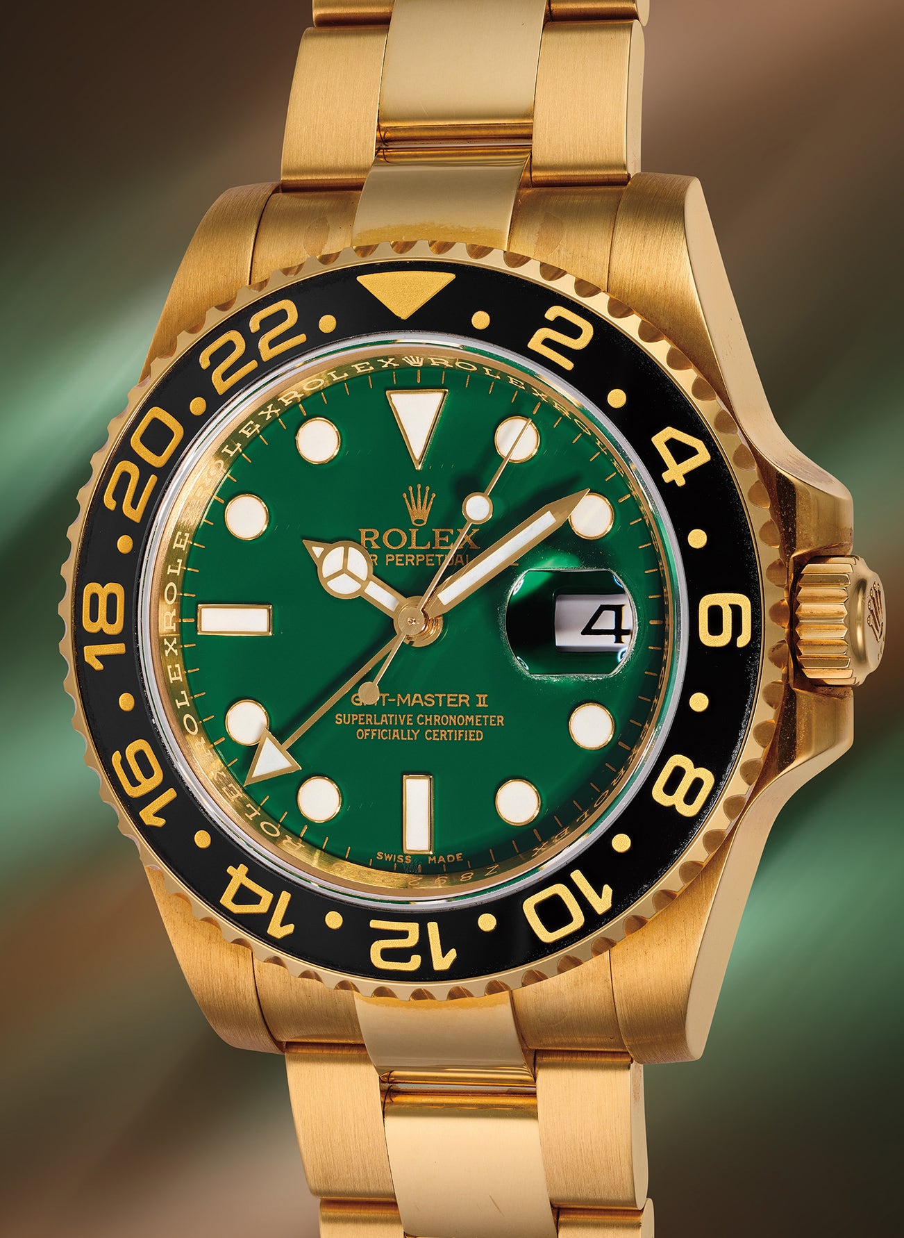 On the occasion of the 50th anniversary of the Rolex GMT-Master, Rolex launched in 2005 the redesigned GMT-Master II reference 116718LN in yellow gold and introduced a ceramic bezel insert branded as Cerachrom that is impervious to scratches and fading, providing high durability.