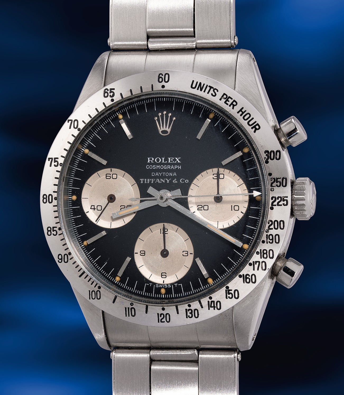 The present example from circa 1964 with a 1 million serial number represents a rare find for vintage Rolex collectors. This early model features the sought-after small “Floating Daytona” designation beneath its signature and is double-signed by one of the most prestigious watch retailers: Tiffany & Co, where a similar example with a silvered dial is prominently documented in the Ultimate Rolex Daytona book by Pucci Papaleo. The signature is identical on both instances of the 6239, down to the subtle details of the slightly warped letters.
