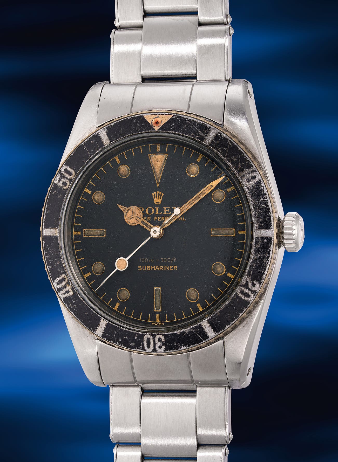 This example, bearing a 230’xxx serial number, was made circa 1957 and is presented in very good overall condition, showcasing a strong case with well-defined bevels and thick, prominent lugs. The dial is original and retains impressive radium readings on a Geiger counter. The luminous material has aged beautifully, and the large white lollipop seconds hand complements nicely with the non-hashed bezel, which features a slightly faded red triangle on top, enhancing the vintage allure of this timepiece.