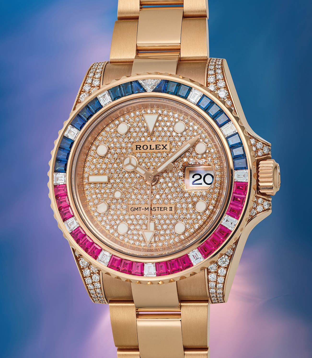 In the 1980s, Rolex began to experiment with gem-set timepieces, adding diamonds, rubies, and sapphires to some of their most exceptional watches including the Cosmograph Daytona and the GMT-Master. The addition of these gems lead to the SARU collection, which derived its name from the “SA” in sapphires, and “RU” in rubies.