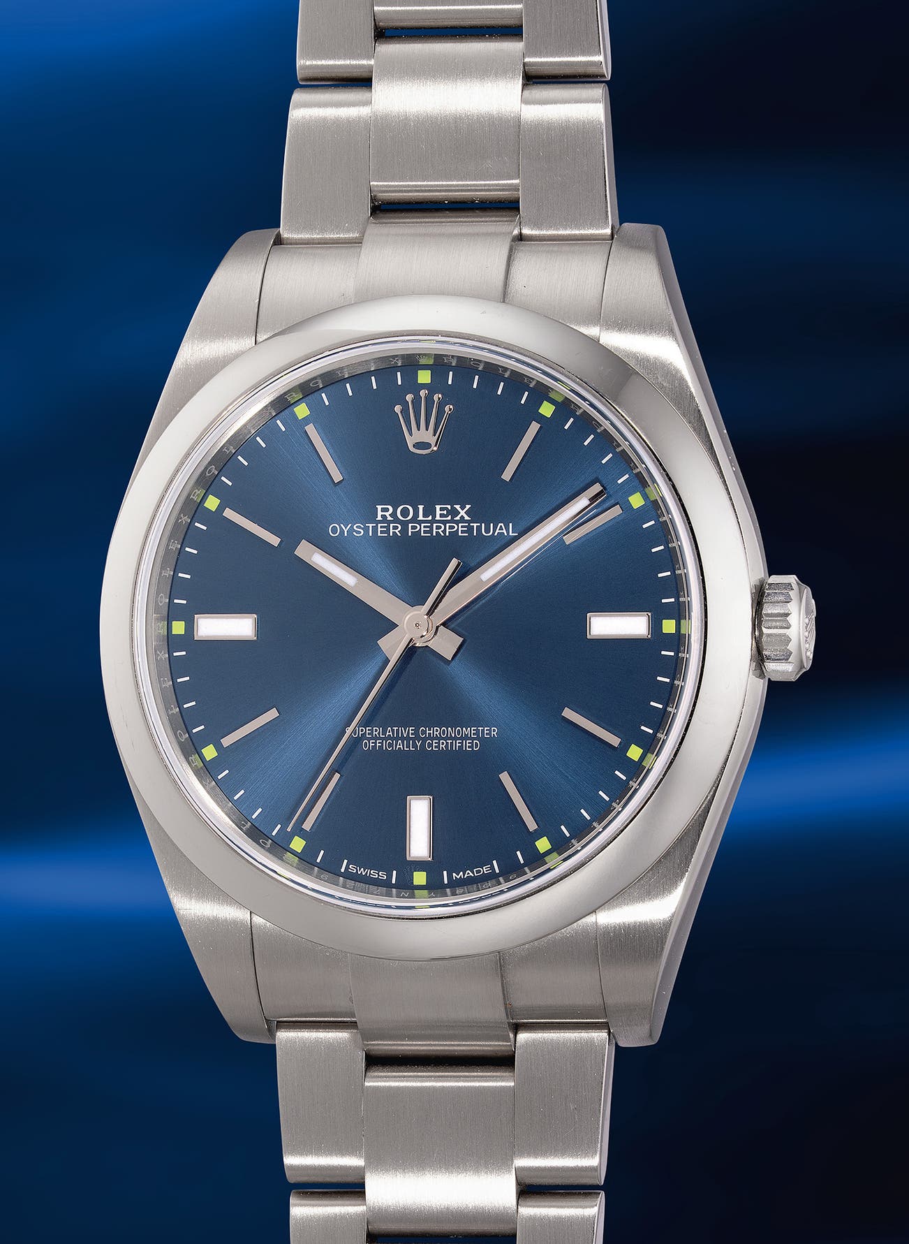 Dated to circa 2015, the present early example showcases a blue dial which demonstrates a nice contrast with the green accents on the minute track. Offered in excellent condition with its original guarantee, this watch is a smart choice for those who find 39mm as the perfect size for a wristwatch.