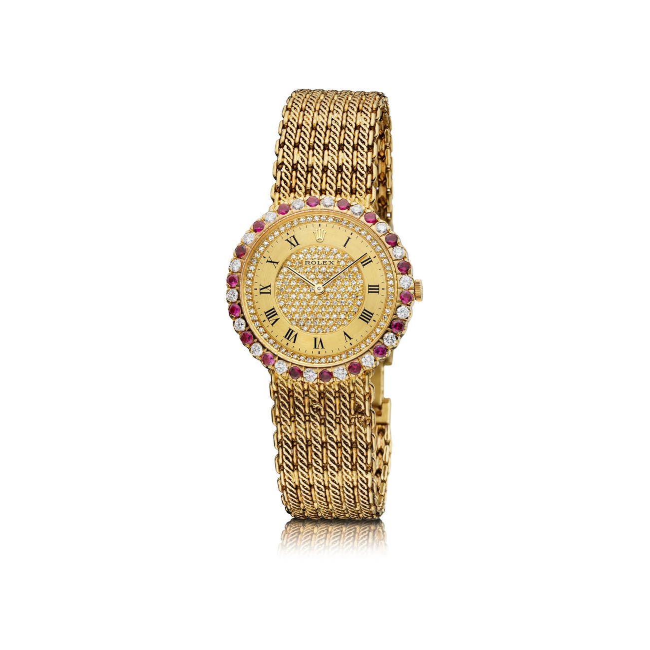 Gold, diamond and ruby ladies' wristwatch, 'Cellini', 1980s