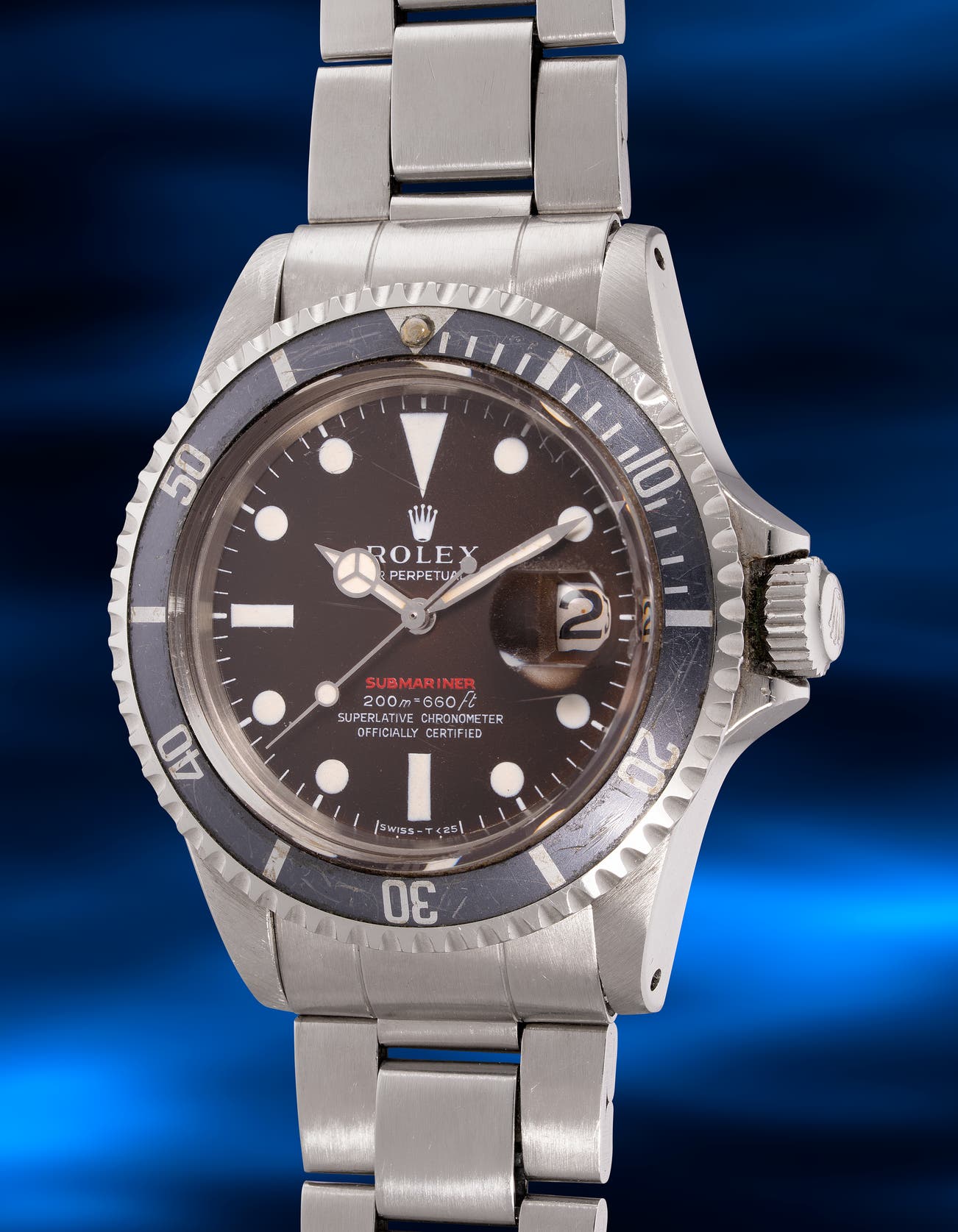 - What makes the present "Red Sub" even more collectible and appealing is its dark chocolate dial where the slight tropical hue is evenly aged across the entire surface.