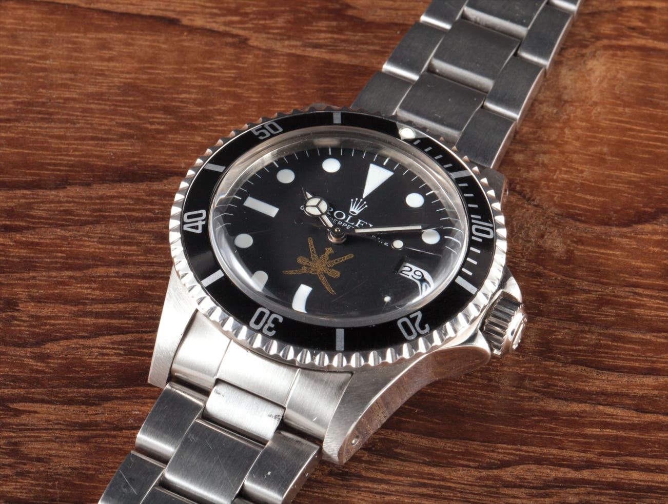 Emblazoned on the dial at 6 o’clock is the “Khanjar”, the national emblem of Oman that features a traditional Khanjar-type dagger used for ceremonial occasions. When found on a Rolex watch, it signifies a royal provenance. Such watches, referred to as “Khanjar” by collectors, were made on commission from the Sultan of Oman, His Majesty Sultan Qaboos bin Said al Said. With his own formidable watch collection, His Majesty’s passion for horology is well known. They were given as gifts to loyal servants and foreign dignitaries.Born in 1940, and ascending to the throne at age 30 following studies under the President of India and military training at the Royal Military Academy at Sandhurst, England, his reign has been one of great success. With revenues received from oil sales, he drove transformational advances in healthcare, education, and infrastructure. Watches with the Khanjar are extremely sought after. Due to their exceptional rarity, few have appeared on the market.Phillips is proud and delighted to offer, for the first time ever at auction, what is amongst the rarest of all versions of the Rolex Sea Dweller. With its distinguished Gold Khanjar at 6 o’clock on the dial, it is amongst the rarest of all Khanjar watches known to exist.In the 1970s, to recognize the role that Britain’s elite special forces branch, the SAS, played in defeating the Dhofar Rebellion, His Majesty Al Said commissioned very limited batches of Rolex Sea Dwellers with either a red Khanjar, red ‘Qaboos’ dial script, and rarest of all, a Gold Khanjar. It’s believed the red color, as used in the Omani flag, symbolizes battles against invaders – a theme that is in accordance with the British soldiers who served to protect his nation.The gold color signifies an object of utmost importance, used to represent the Sultan himself. Whereas approximately 80 to 90 Sea Dwellers with red Omani text are estimated to have been made, only between 9 and 12 Sea Dwellers are believed to exist with a gold Khanjar. Until now, only four of these watches have surfaced, most falling within a very narrow serial range spanning just 10 numbers.In addition to the Gold Khanjar, the dials on these watches exhibit other variations not seen on any other Sea-Dweller. The coronet at 12 o’clock is of a unique shape whilst the hour markers contain no luminous materials.This particular example is in exceptional condition. With no signs of ever having been polished, the sharp bevels, angles and curves are perfectly preserved, as it originally left Rolex’s factory. The dial is flawless, with perfectly white markers, printed with the identical ink used for the coronet and ‘Rolex’ logo at 12 o’clock. The ‘Rolex’ logo is horizontally engraved on its caseback, consistent with the casebacks found on “Double Red” Sea-Dwellers produced during the same era. The inner side of the caseback is engraved with the same serial number stamped between the lugs at 6 o’clock, indicating that this watch was indeed made by Rolex upon special order.Furthermore, it is accompanied by multiple confirmation papers from Rolex Geneva that include an International Service Guarantee and an original service invoice mentioning the special dial.Its historical significance, royal provenance, immaculate condition, and superb rarity make it one of the most exciting and important Rolex sport watches to appear at auction in recent years.