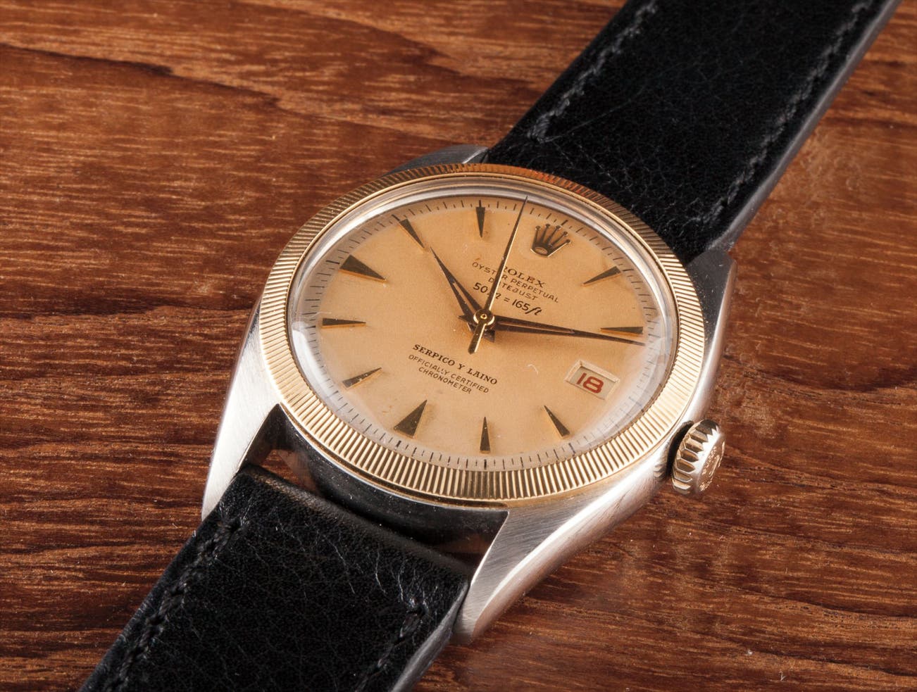 Delivered and sold through Serpico y Laino, Rolex’s retailer in Caracas, Venezuela, it has survived in remarkably crisp and unpolished condition.