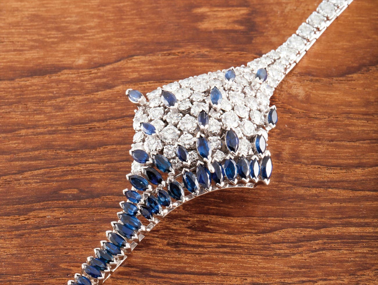 An extremely rare and important lady’s platinum bracelet watch set with diamonds and sapphires and with concealed dial