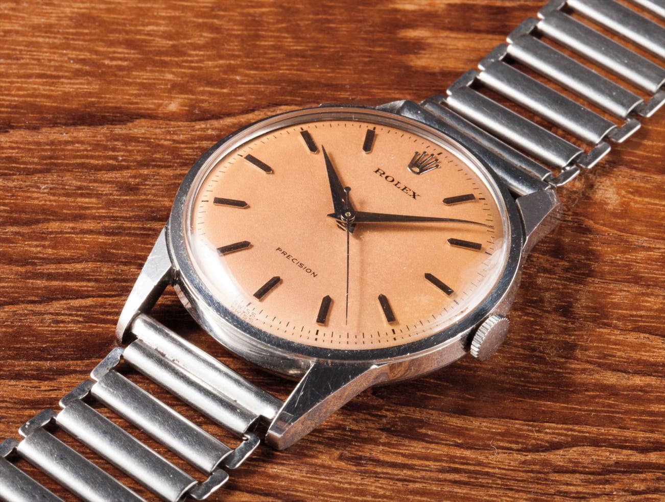 Fitted with a masculine salmon-coloured dial and prominent dauphine hands which perfectly harmonize with the bamboo bracelet typical from the period, it has probably never been polished since new and it is a perfect proof of how in watch design, “less is more” and is never going out of fashion.