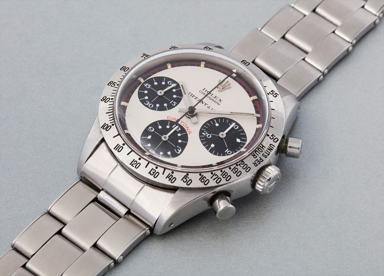 When to most Rolex collectors a regular 6239 Cosmograph represents a must have, more discerning (and lucky) collectors are aiming to own one day an example with a Paul Newman dial. To call one day a Tiffany Paul Newman one's own is an extraordinary accomplishment. According to scholarship, this number can be quite precisely named - it is our understanding that only four authentic and correct examples are accounted for today. This makes the present watch one of the world's most important and valuable, yet subtle Rolex Cosmographs, and most likely years will go by until another example may become available.
