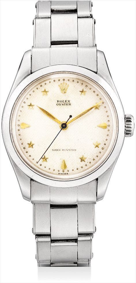 A fine and rare stainless steel wristwatch with sweep centre seconds, honeycomb 'star' dial and bracelet