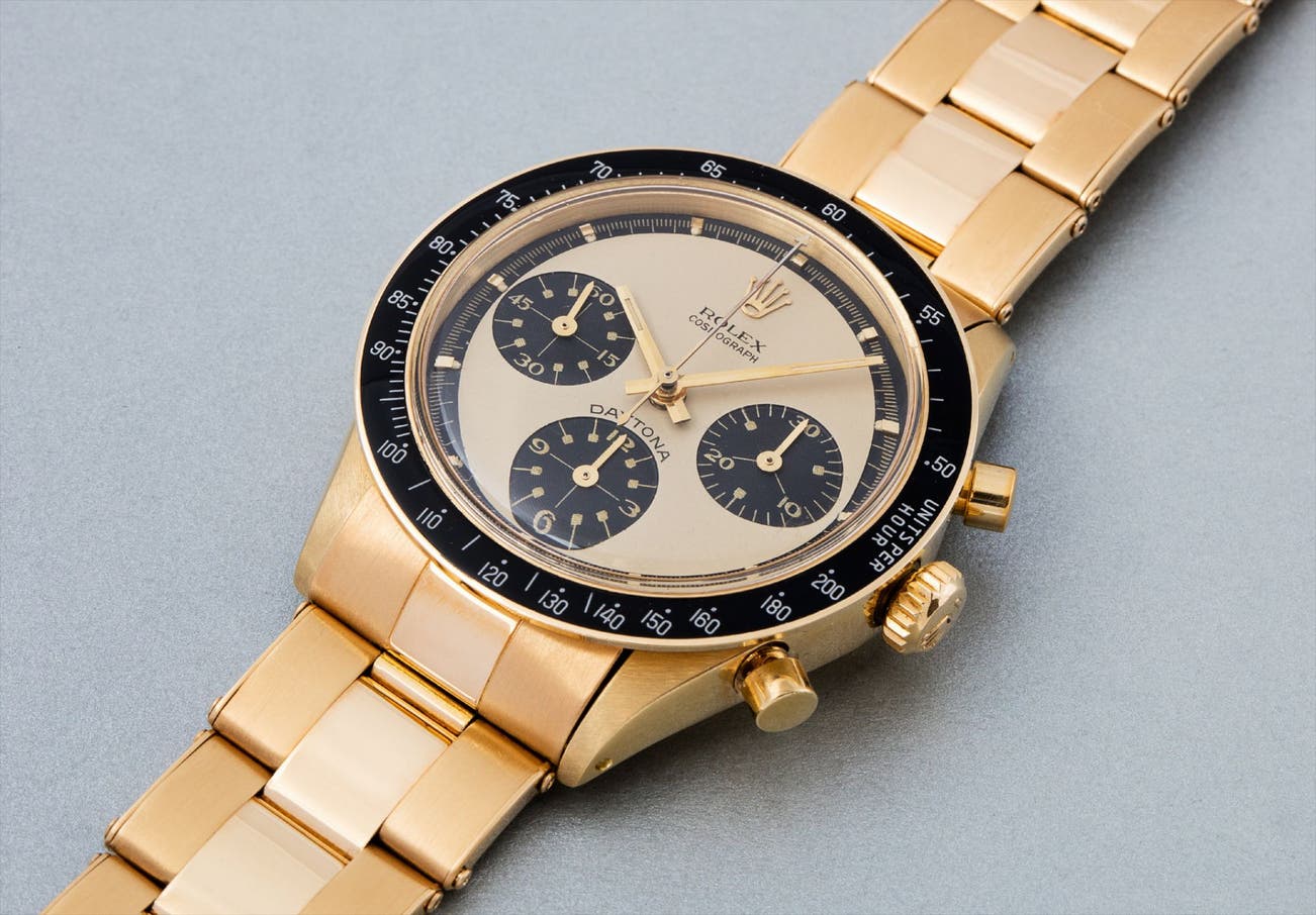 The present example, manufactured some nearly 50 years ago, distinguishes itself by its wonderful state of conservation. The case and the dial are crisp and well defined. The bezel shows absolutely no imperfections. The riveted Oyster bracelet is tight, with very light traces of gentle wear seen on the original satin and mirror finished surfaces. This superb Paul Newman Daytona will certainly delight the most demanding collector of the world’s finest watches.