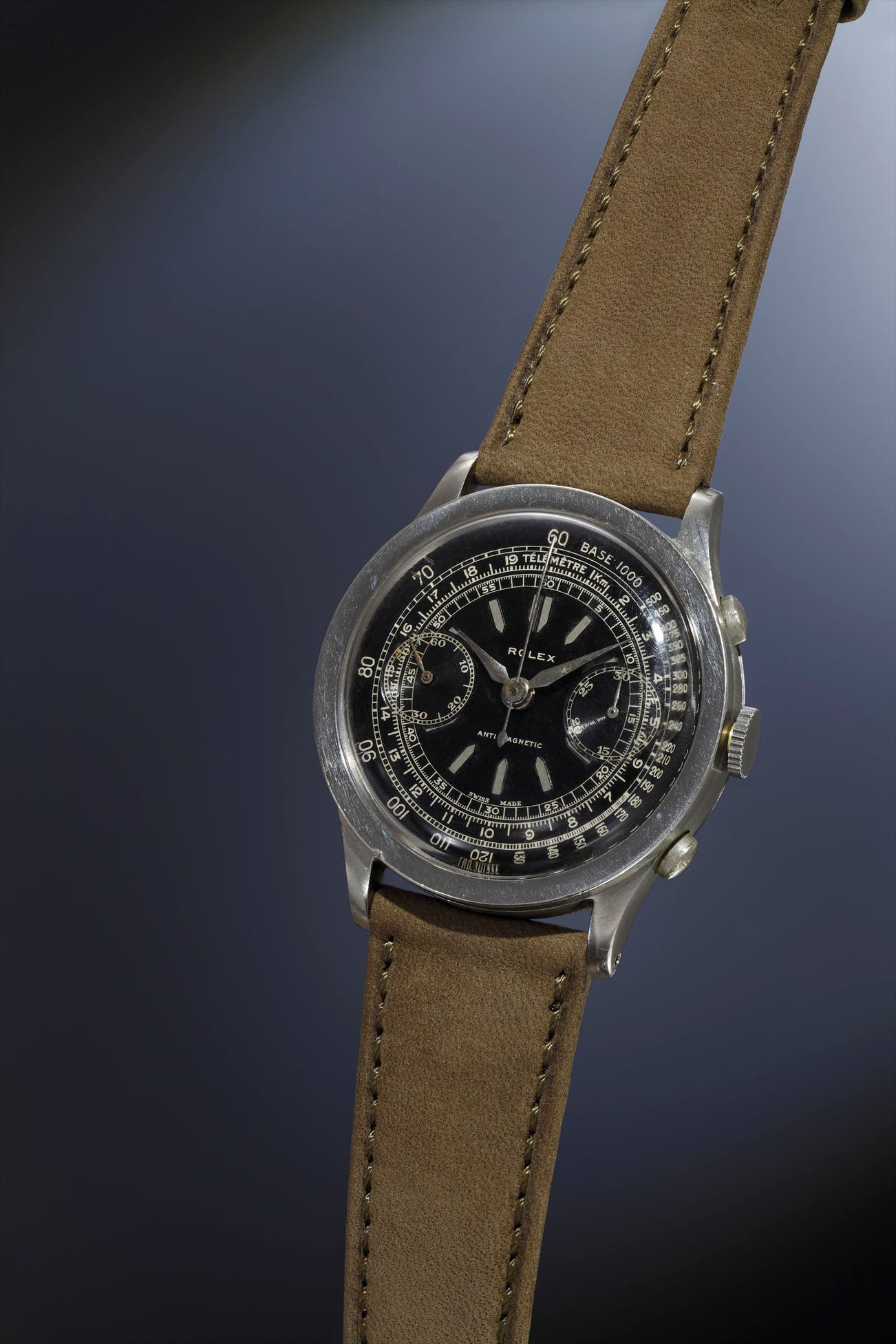 Preserved in very original condition, the watch should be considered a special opportunity, as we understand that this very watch has never been shown or offered publicly. A sporty, yet elegant gentleman’s watch, its design is more modern compared to earlier Rolex chronograph watches. It would certainly take on a prominent position in any collection of Rolex watches.