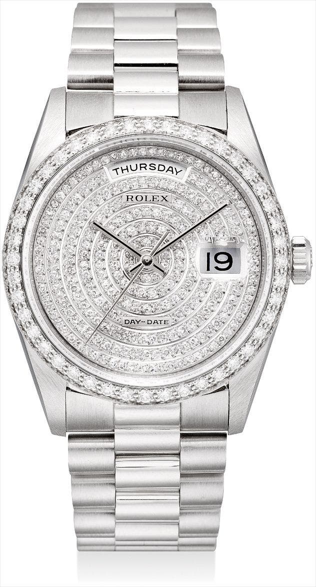 A very fine and rare platinum and diamond-set calendar wristwatch with sweep centre seconds and bracelet