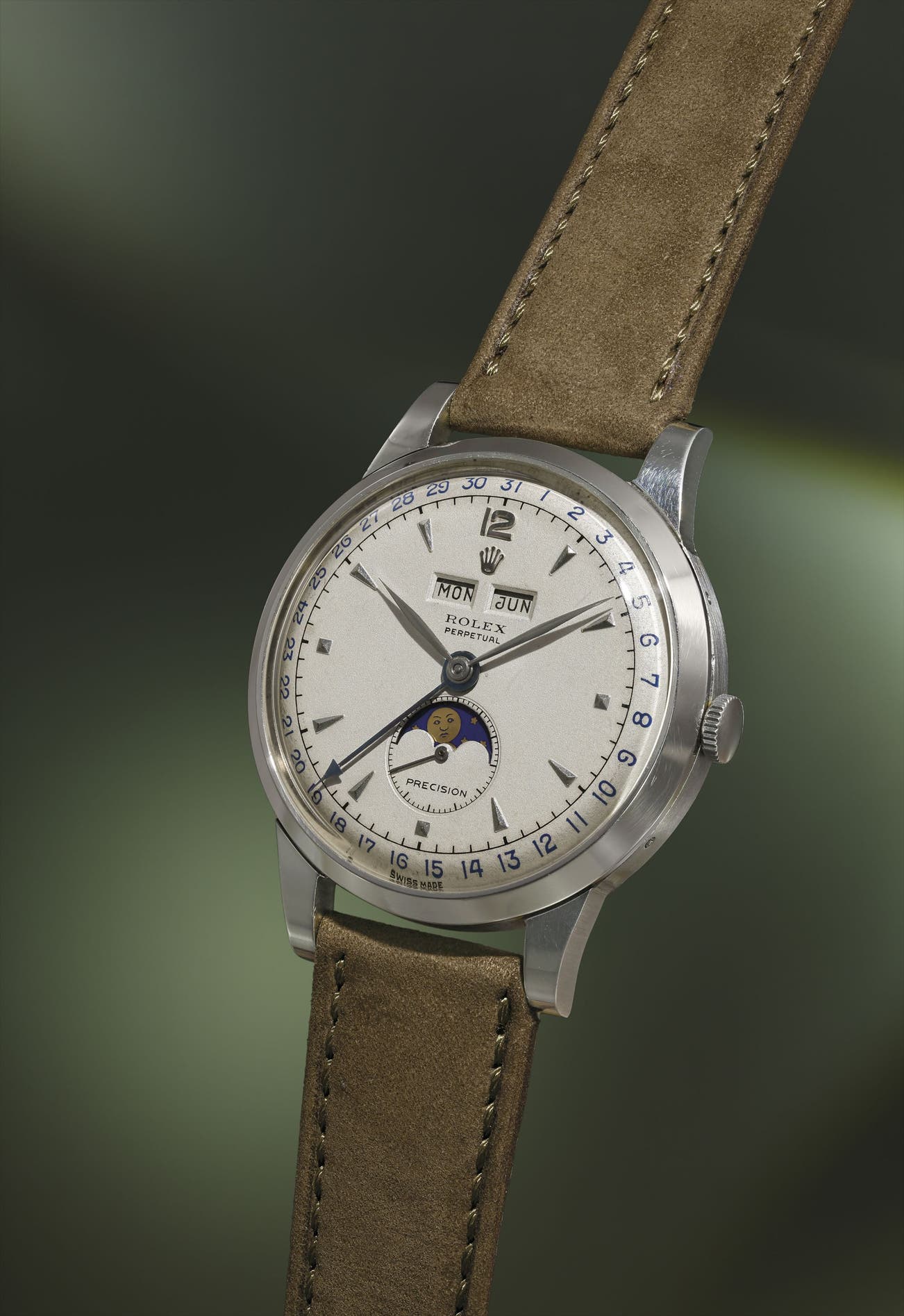 A similar example, cased in stainless steel, was sold at Phillips’ The Geneva Watch Auction: TWO, lot 167, for an astounding 905,000 CHF.