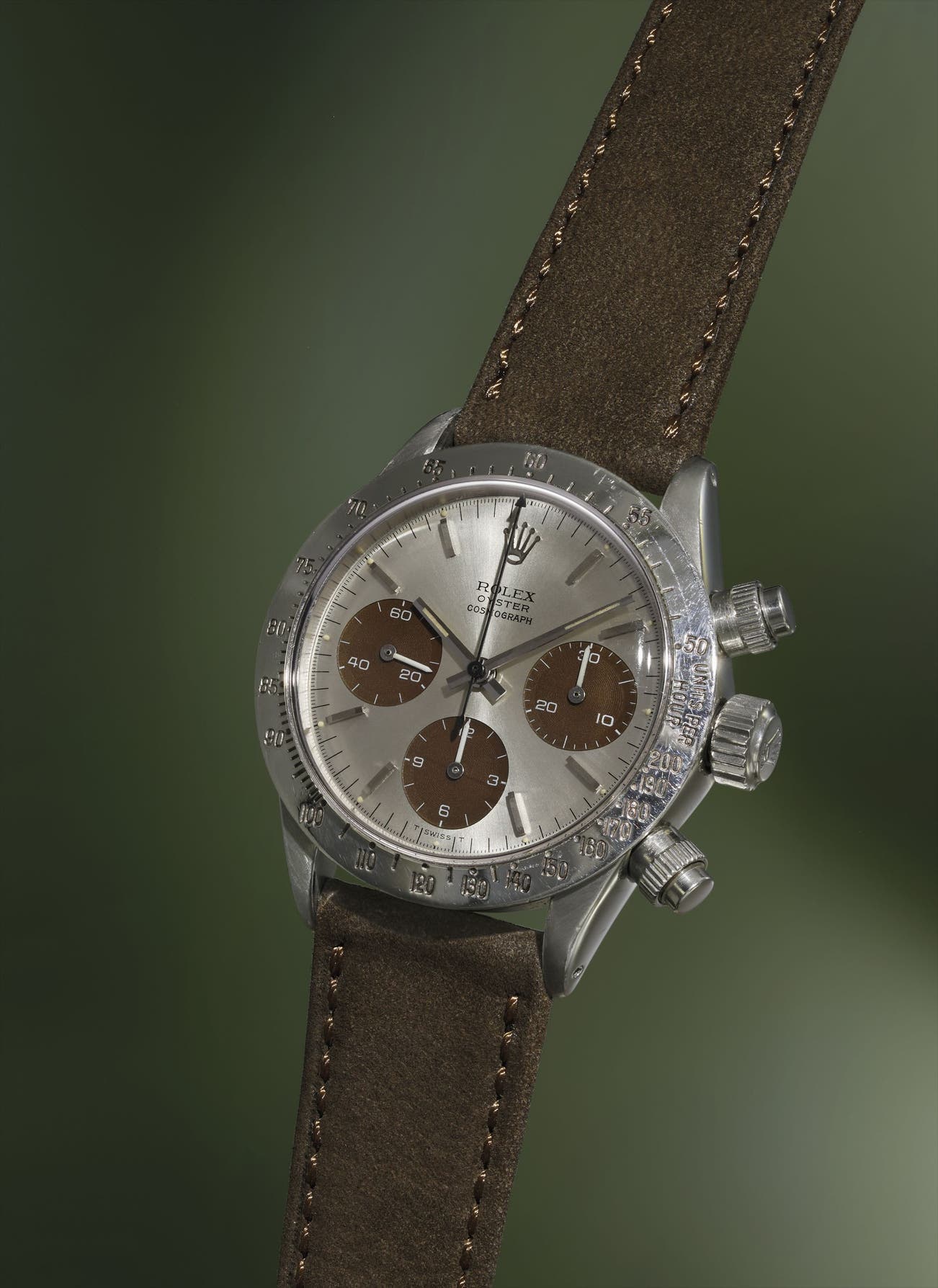The case is impressive, retaining its proportions and milled finishes to the top of the lugs. This watch is also fitted with the correct bezel and pushers. This watch is completed with its original guarantee along with presentation box. The provenance of this watch is remarkable, having been sold at Christie’s historic Rolex Daytona "Lesson One" sale, lot 22.