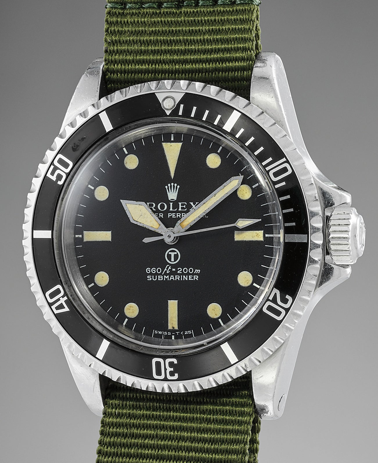 When decommissioned, they were sold by the MOD during the 1980s, and purchased by civilians and dealers who often replaced or removed the military-specific components - the encircled T dial, sword hands, 60’ bezel, engraved case back, and fixed spring bars - to transform them into more commercial, “civilianized” Submariners. Thus, very few MilSubs have survived with their “military-spec” configurations.