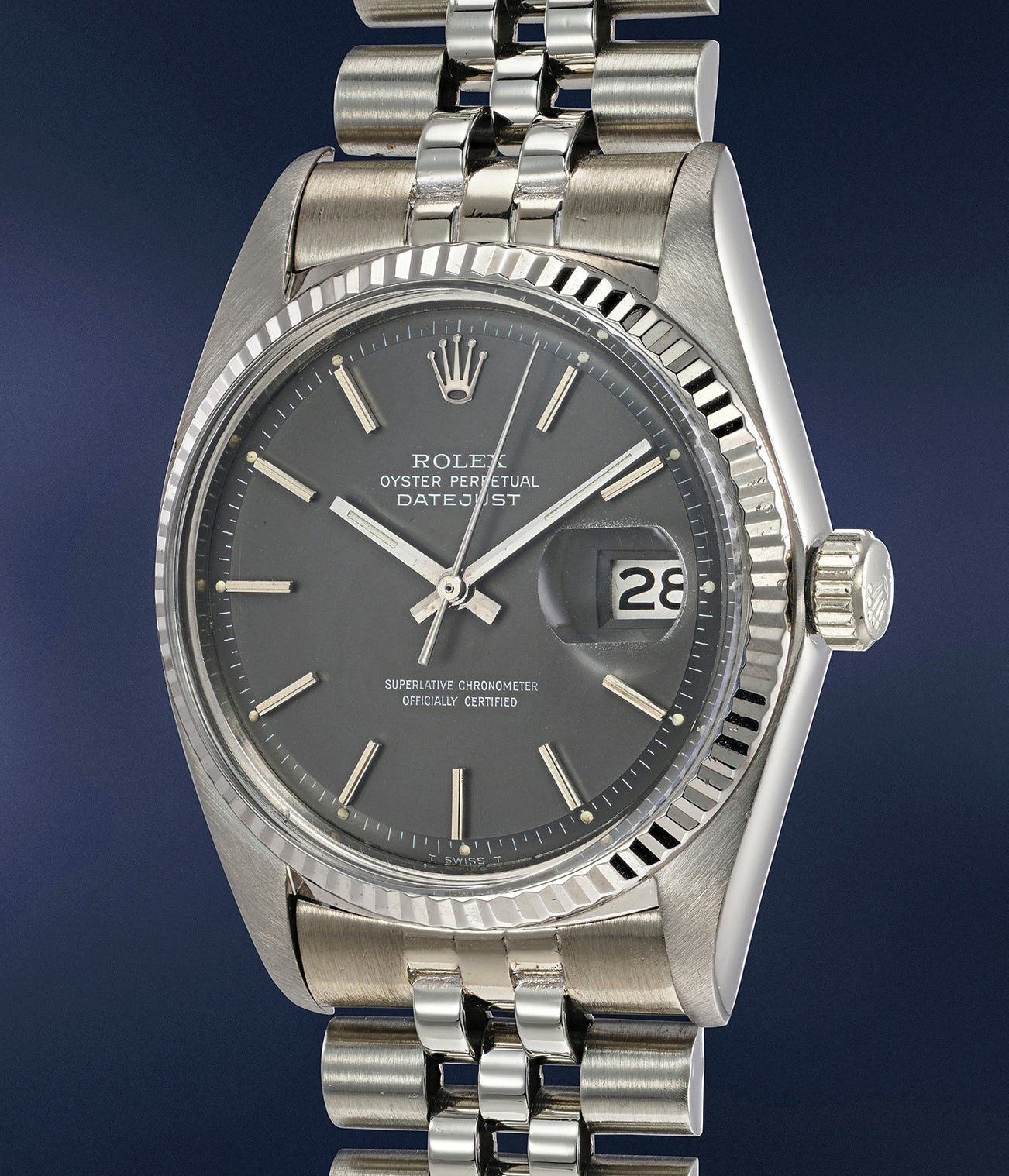 The reference 1601 was in production from 1959 until 1977 and featured a fluted bezel. The Datejust became one of the most sought-after timepieces and Rolex began to offer it with a variety of dial variations.