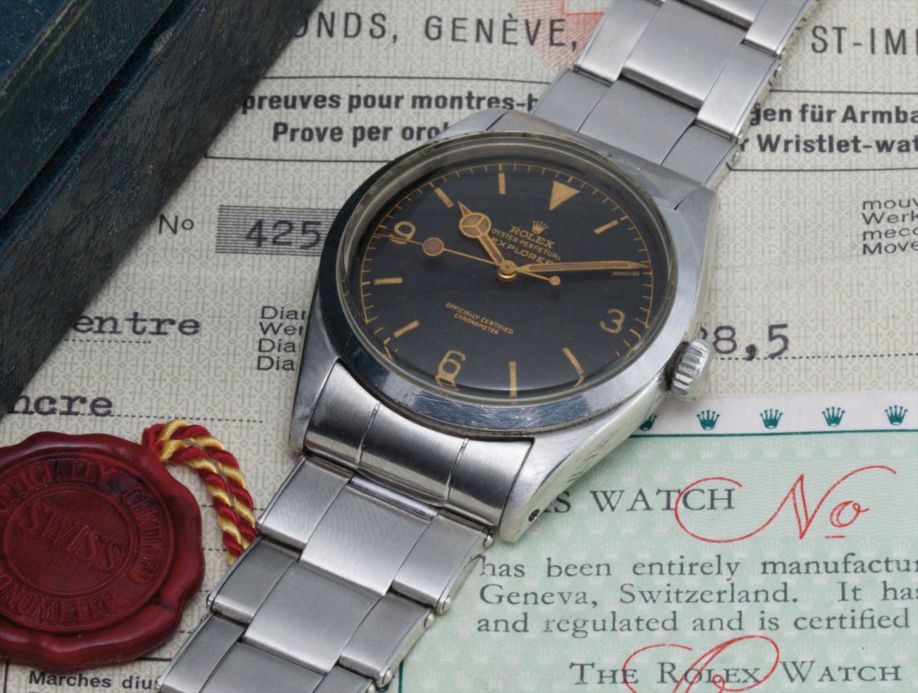 A very rare and unusual wristwatch with centre seconds, bracelet, red depth rating, guarantee, Bureaux Suisses de Controle Officiel de la Marche Des Montres, box and swing tags