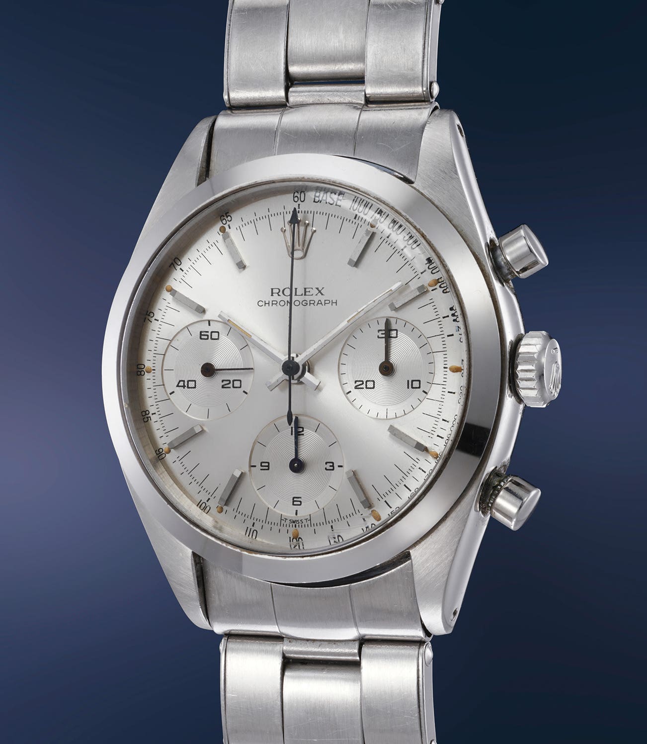 Produced from approximately 1960 to 1967, reference 6238 is a perfect embodiment of the timeless chronograph. Referred to as the “Pre-Daytona” by collectors, it shares similar case size, pushers and baton hands as its contemporary, the first Cosmograph Daytona reference 6239.