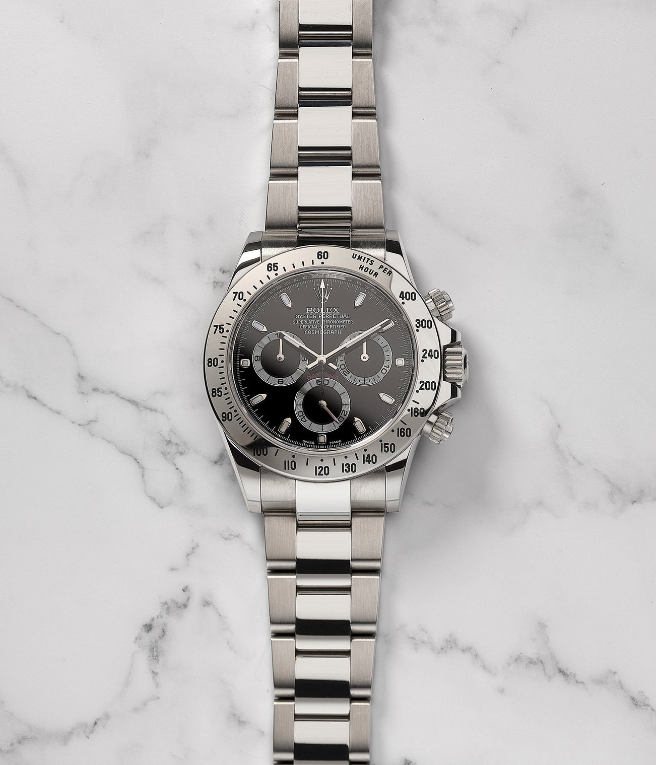 Reference 116520 replaced its predecessor reference 16520 in 2000. It most notably features caliber 4130, which is Rolex’s first in-house chronograph movement. Prior to that, the watch was fitted with the zenith-based El Primero movement. Today, reference 116520 is an iconic model, representing one of Rolex's many technical strides throughout horological history.