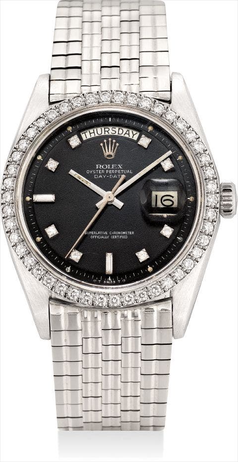 It is interesting to note that a very similar example with rare tile link bracelet was sold at Phillips this past Spring, for almost 150,000 US dollars.