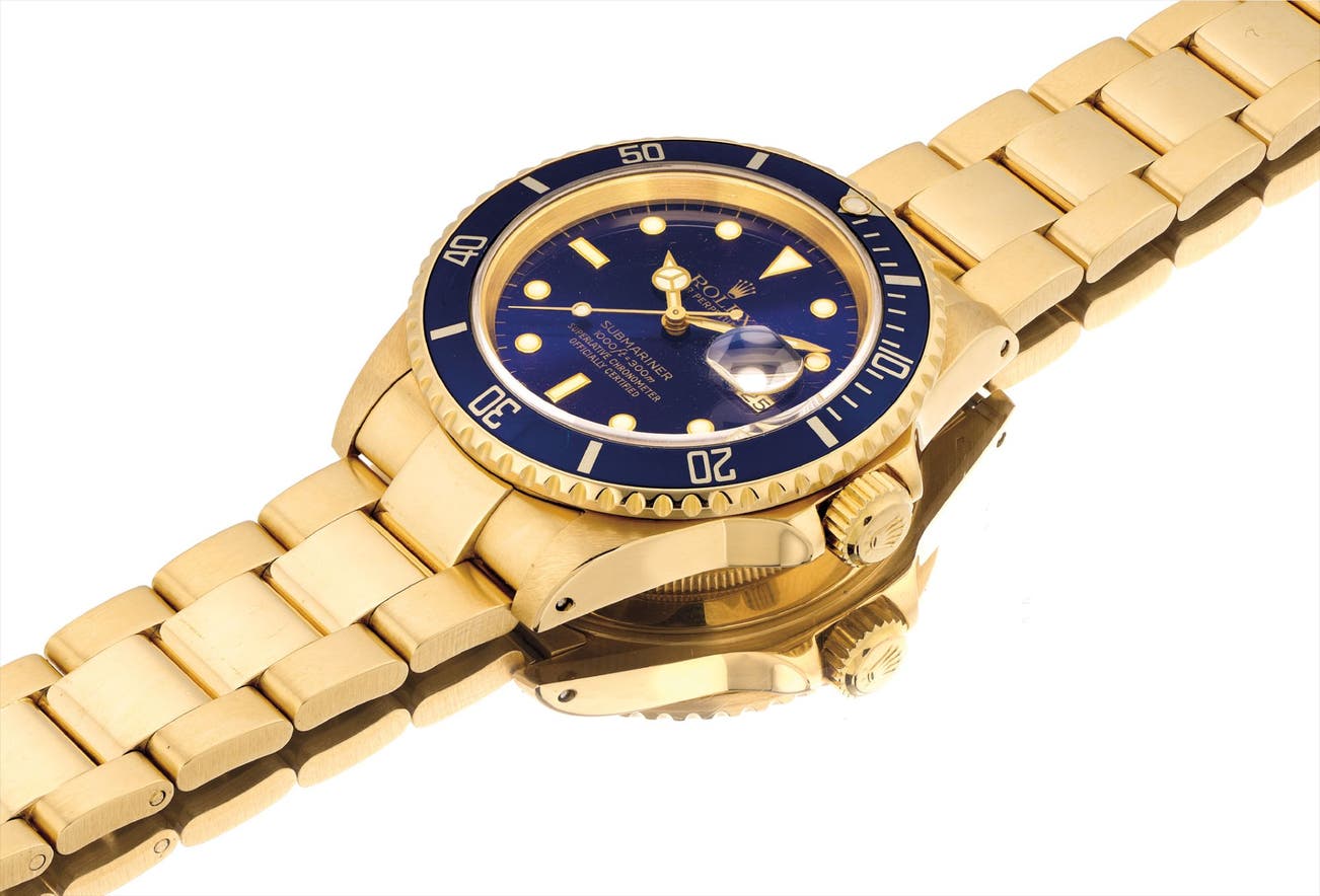Offered in very attractive and original condition with sharp case lines and factory finishes, it is a striking example of a all-gold sports watch made by Rolex.