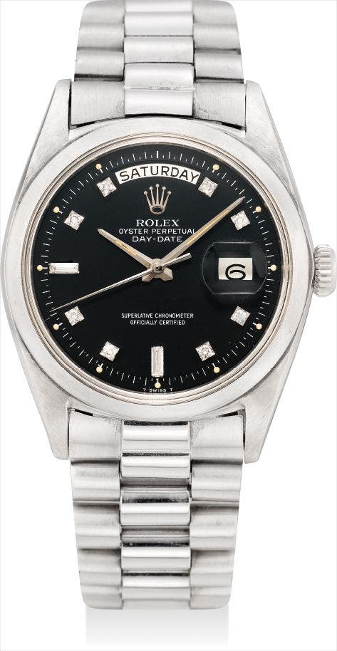 This exclusive and early Day-Date is a very distinguished and highly attractive example of a reference 1802.