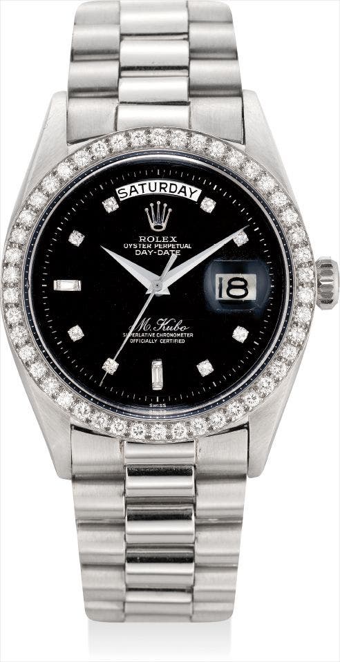 The most exclusive of all Rolex dials are those finished in black lacquer and with diamond-set numerals. To find a platinum 1804 in this condition and fitted with the most exclusive of dials, we are extremely honoured to have this watch in our first Hong Kong sale.