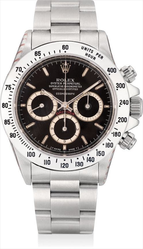 Consigned by a very important collector, the following six Daytona, all represent rare ‘floating Cosmograph’ examples. All six pieces have been recently serviced at Rolex and the majority of which still retains their original accessories. The quality throughout this collection is exceptional, with each watch in equally amazing condition.
