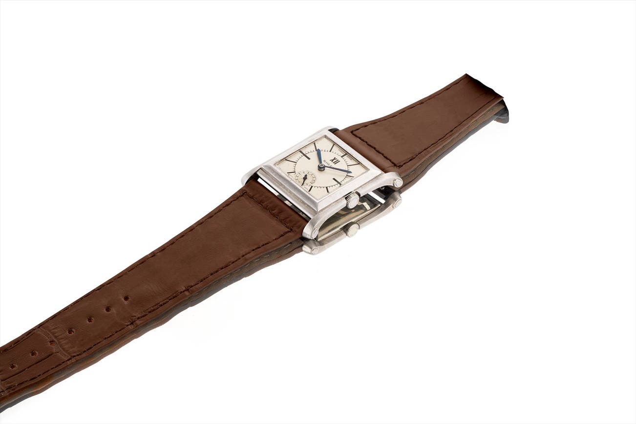 This present reference 912 is a spectacular example in outstanding and original condition. The case numbers are crisp and easily readable without the aid of a loupe. The flared sides, which is an unusual feature, are still very crisp and the two-tone sector dial is mesmerizing. For a watch that is close to a hundred years old, to have retained so many original features, is extremely rare indeed.
