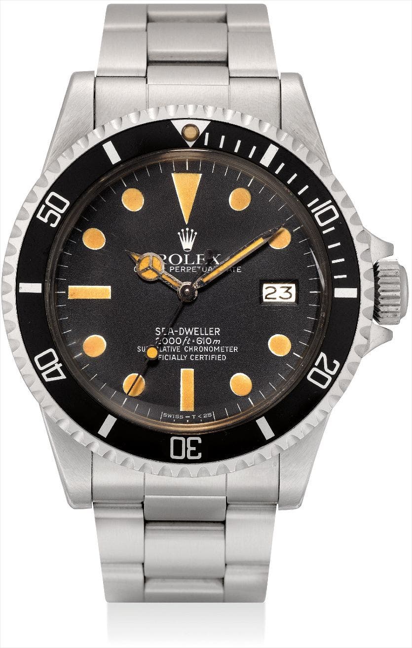 The Great White Sea-Dweller dial can be categorized into five different types of dials with variations of fonts and configurations. The present watch is fitted with a Mk III dial that was manufactured in 1980.