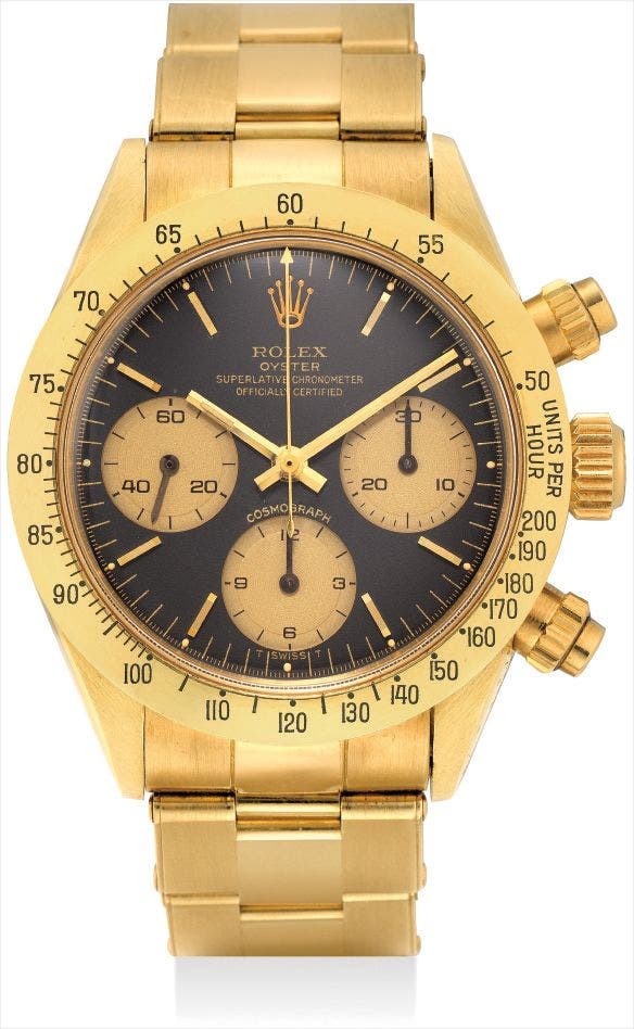The yellow gold Oyster Cosmograph Daytona with screw down pushers was in production for almost 20 years and it is believed that approximately 2000 pieces were manufactured.