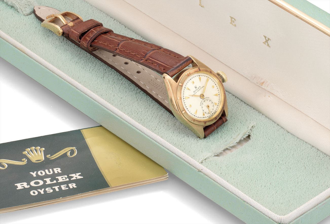 A rare yellow gold wristwatch with instruction manual and original fitted presentation box
