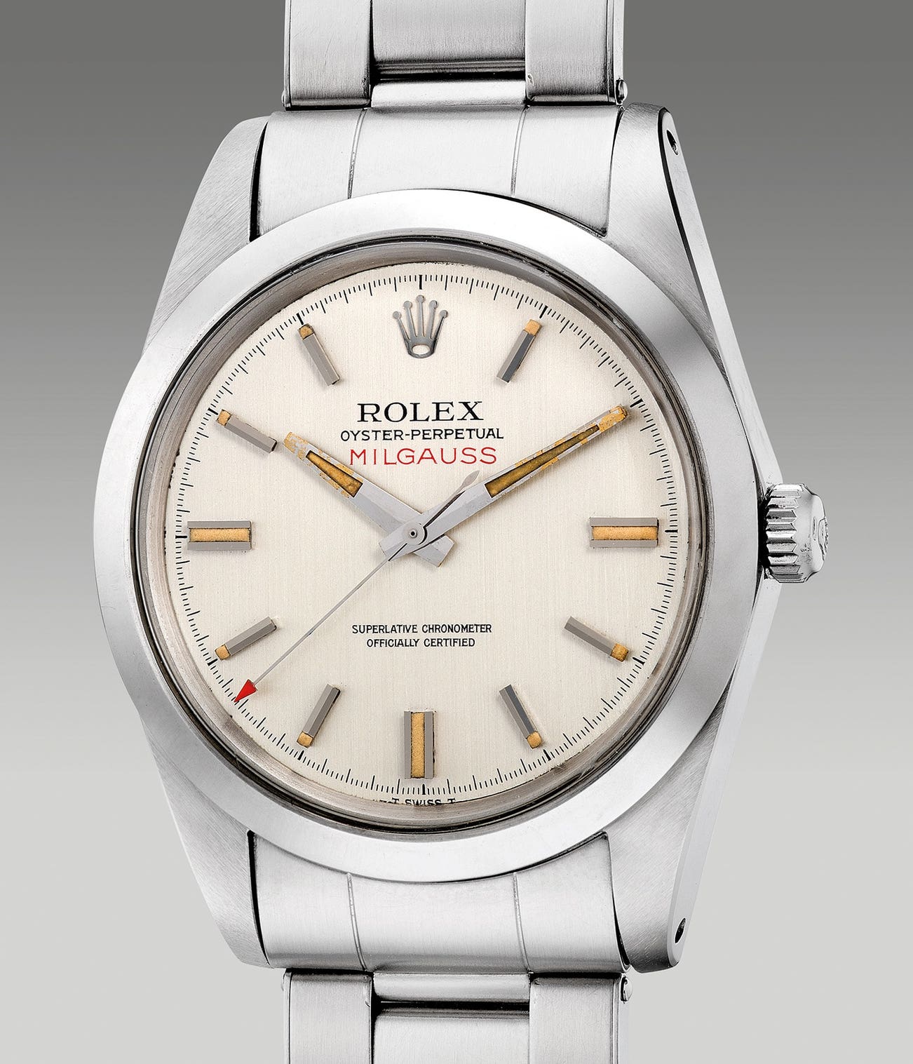 The Rolex Milgauss ref. 1019 was launched in the early 1960’s featuring a thinner case than its predecessors and still retaining a soft iron cage inside the case back to protect the movement from magnetism. Bearing a 1.9 million serial from circa 1968, the preset watch is an early example of the reference that was produced until 1990. Presented in excellent overall condition with an attractive case and dial, it is a nice opportunity to acquire an important milestone Rolex wristwatch.