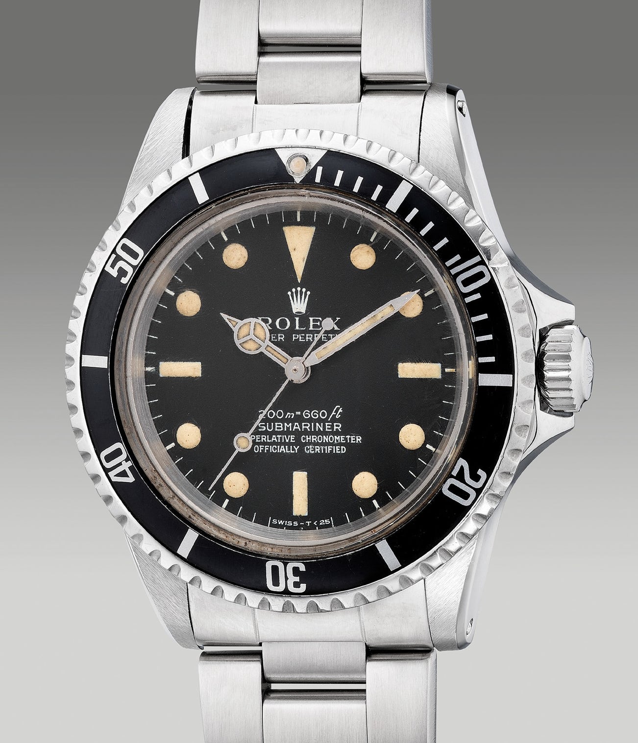 The present example dated circa 1967 belongs to one of the very first examples of a Rolex Submariner ref. 5512 fitted with a matte dial. Presented with an attractive dial with prominent luminous plots that has developed a uniformed change in hue over time, the present example is certainly a desirable one.