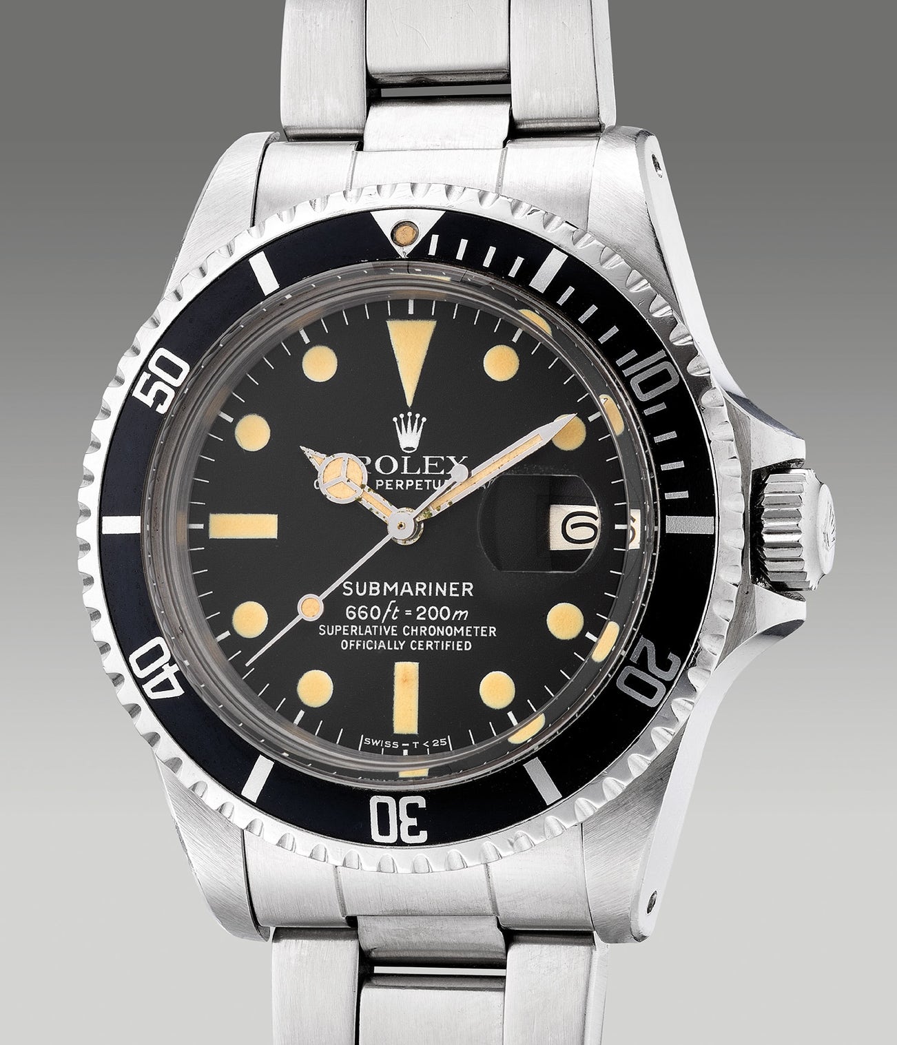 The present example of a Rolex Submariner ref. 1680 belongs to the latter. From circa 1979, the present example displays a matte black dial and features beautifully aged luminous plots uniformed in hue with the hands.
