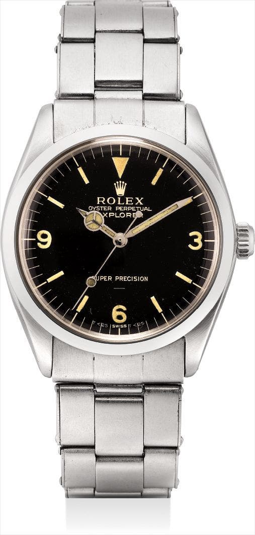The present watch is an extremely collectible example because of its superlatively well-preserved dial, and unusual signature combination. It presents both the underline mark and the T<25 designation. In the beginning of the 1960s, regulations imposed watchmakers to discontinue the use of radioactive radium, and substitute it with the safer tritium. With this change, watchmaking brands were unsure on how to communicate this to the public, Rolex, for example, introduced the underline mark to indicate radium-free dials, then switched to T<25 Swiss, and eventually settled on T Swiss T. The present piece perfectly exemplifies this moment in time, as it presents both the underline mark and the T<25 designation. Furthermore, close analysis shows both markings were printed at the same time in silver on a gilt “single swiss” dial: obviously, Rolex employed a pre-existing dial and modified with both designations.