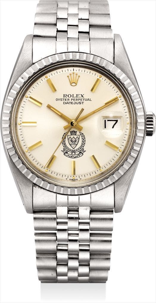 A fine and rare stainless steel wristwatch with sweep centre seconds, date and bracelet, made for the Bahrain Police Force